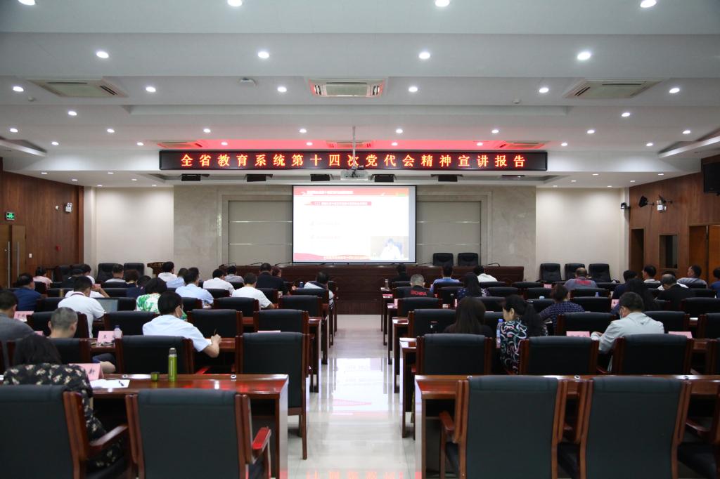 本网讯 为进一步抓好省第十四次党代会精神的学习宣传工作,按照省委安排,省委教育工委于6月15日召开学习贯彻省第十四次党代会精神宣讲报告会,省委教育工委书记王建利为全省教育系统作宣讲报告,我校设视频分会场。全体在校的校领导和副处级以上干部参加学习。