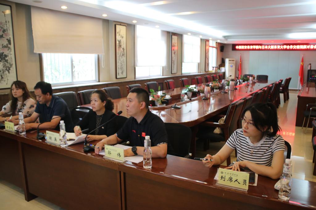 本网讯 6月20日下午,我校与日本大阪体育大学召开合作交流视频对接会。日本大阪体育大学副校长兼国际交流处长前岛悦子、我校副校长谢英出席会议。大阪体育大学国际交流中心顾问梅林·熏教授、曾根纯也教授,我校国际交流中心全体人员参加会议。我校体育艺术学院郭伟教授担任翻译工作。