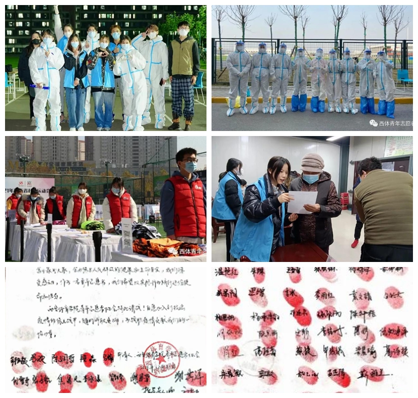 我校青年志愿者协会自成立以来,在学校党委的领导下,在校团委的指导下,秉承“奉献、友爱、互助、进步”的志愿精神,常态化开展疫情防控、义务支教、尊老敬老、帮孤助残、环境保护、禁毒防艾等一系列志愿服务活动,引导西体青年积极参加社会公益服务。特别是2021年面对“家门口”的十四运会及残特奥会、“一带一路”系列赛等大型赛事,我校青协积极承担多项志愿服务工作,志愿者们吃苦耐劳,挥洒汗水为赛事增光添彩。在社区敬老活动、社区便民服务、关爱残障人士等温馨扶弱、阳光助残活动中,志愿者们以百分之百的爱心与耐心,为服务对象带去温暖。年底面对来势汹汹的新冠疫情,可爱的“小蓝们”为师生筑起校园安全的疫情防线。
