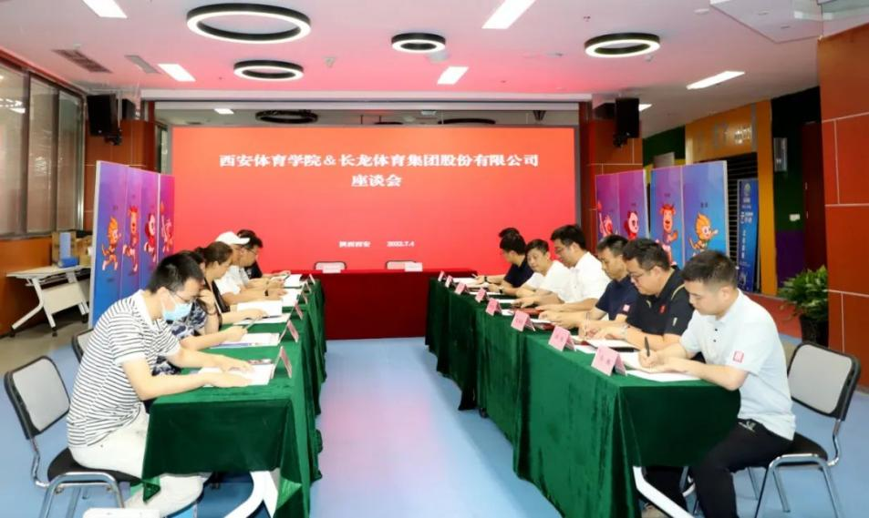 本网讯 7月4日上午,副校长谢英带领运动休闲学院党政负责人一行6人到访长龙体育集团股份有限公司与陕西高博体育发展有限公司实地考察,就推动教产融合、加强校企合作等进行深入洽谈,并签订合作协议。长龙体育集团董事长吉云波、副总经理张书民,高博体育总经理贺强等相关负责人员参加座谈。