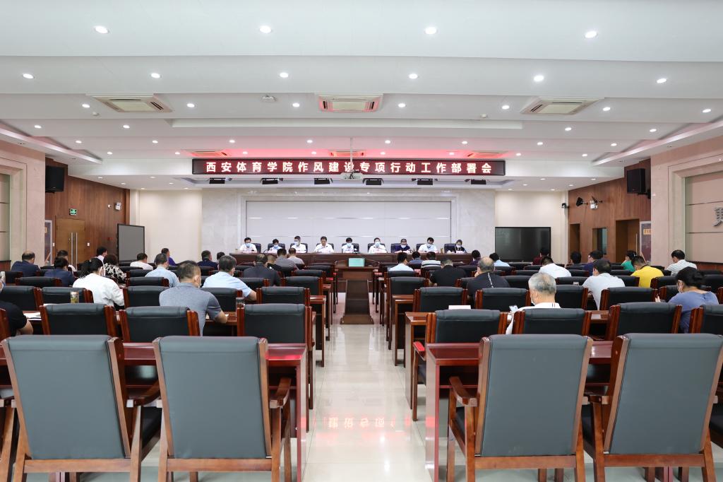 党委副书记高玉峰宣读了《西安体育学院关于开展作风建设专项行动的实施方案》,从总体要求、深入查摆作风问题及其症结、开展重点领域作风突出问题专项治理、发挥考核评价指挥棒作用、加大鼓励激励力度、精准开展鞭策惩戒、建立健全长效制度机制、强化组织保障8个方面制定了20条具体措施,对作风建设专项工作进行了安排部署。