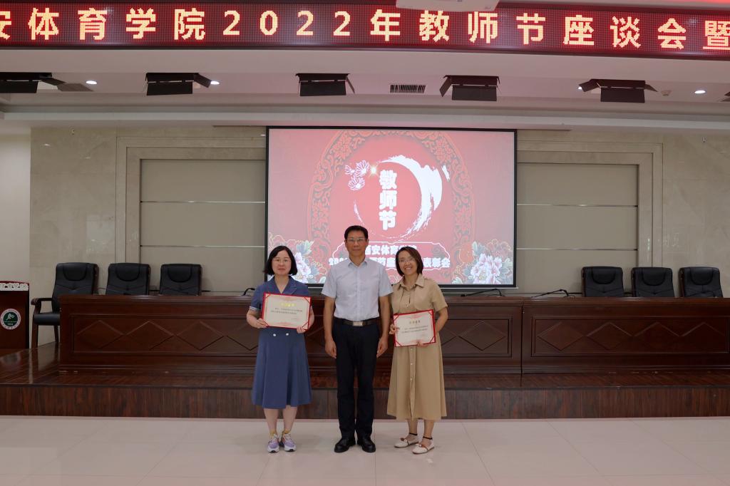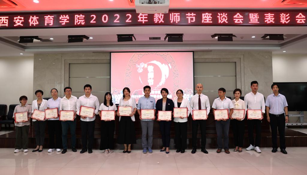 副校长刘新民为获得西安体育学院教学名师称号的张彩红、穆晓、温晓妮、严峰和获得西安体育学院优秀青年教师称号的于善、马菊霞、杜新星、李川、于美至、王晓艳、于巴锁、丁建岚、杨辉、胡婕婷、刘伟校颁发荣誉证书。
