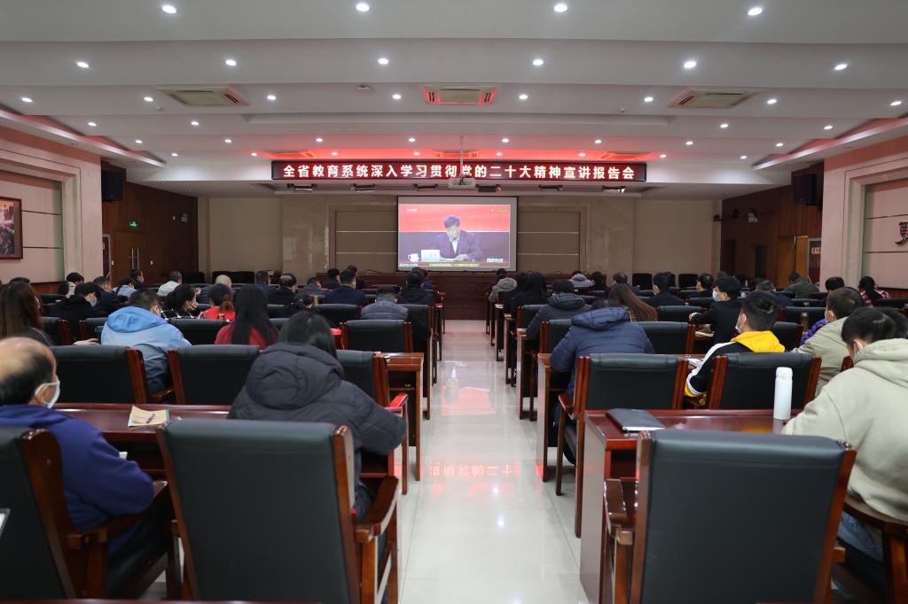 王建利从深刻学习领会党的二十大精神的丰富内涵、准确把握党的二十大对教育的定位和要求、切实推动党的二十大精神在陕西教育系统落地生根三个方面进行了全面宣讲和系统解读。他强调,党的二十大报告提出,教育、科技、人才是全面建设社会主义现代化国家的基础性、战略性支撑,充分体现了习近平总书记对强国崛起规律、对当今技术革命和产业变革的时代特征、对未来世界发展大势的深刻洞察和精确把握,充分体现了习近平总书记对教育的关心和重视,对新时代新征程教育工作的期待和厚望。全省教育系统要进一步增强政治自觉、思想自觉、行动自觉,切实把党的二十大精神落实到教育改革发展各方面、全过程。