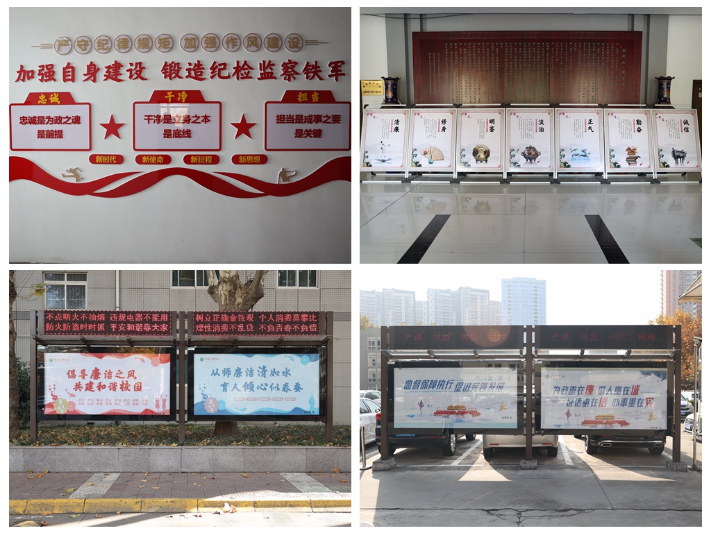 为全面深入推进“清廉学校”建设,近日,师生们发现,校园内办公楼、教学楼、餐厅、训练场馆、室外宣传橱窗等地方布置了许多崭新美观的宣传展板,如“廉洁人生七笔账”“廉洁从教”“监督执纪的四种形态”等,展示了廉政勤政、诚实守信、纪律规矩、师德修养等内容。来往的师生纷纷驻足,认真阅读着这些名言警句。原来这是我校深入推进清廉学校建设,开展“廉洁文化”进校园的内容之一。