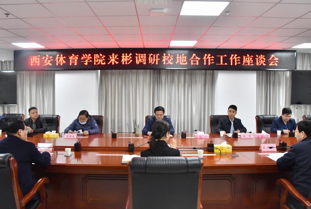 随后召开的座谈会上,张虹介绍了彬州市整体发展状况及体育工作开展情况,他表示,彬州市委市政府高度重视体育事业发展,大力开展全民健身活动,曾获得“全国群众体育先进单位”“陕西省全民健身示范县”荣誉称号。希望与西安体育学院开展校地合作,助力彬州开启体育事业发展新篇章。王选平对彬州市体育工作开展情况进行了详细的说明。吕锋同志介绍了彬州市体育教育情况。我校党委校长办公室主任张军对我校基本情况和此次校地合作的方向做了介绍。随后双方围绕合作专业及细节问题进行了深入探讨与交流。