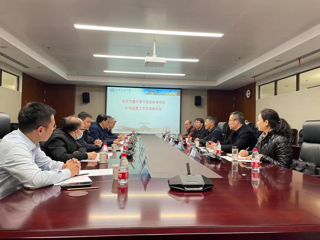 本网讯 2023年3月24日,我校党委副书记、纪委书记、监察专员杨芳乾带领我校纪检监察、巡察干部赴西安交通大学学习交流。西安交通大学党委副书记、纪委书记、国家监委驻西安交通大学监察专员马博虎主持座谈会议。