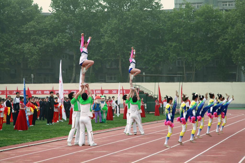 绚丽的礼花腾空而起,绽放在西体上空,全校师生用欢呼声和掌声共庆第47届田径运动会运动会开幕。
