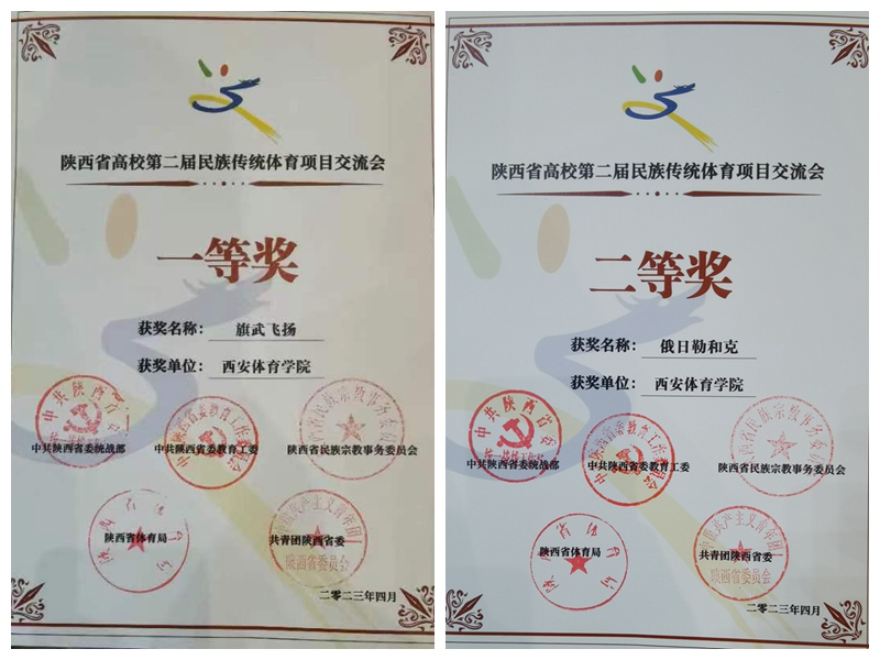 本网讯 2023年4月22日上午,由中共陕西省委统战部、中共陕西省委教育工委、陕西省民族宗教事务委员会、陕西省体育局、共青团陕西省委联合主办,西安交通大学承办的陕西省高校第二届民族传统体育项目交流会隆重举行。本次交流会上,我校推荐的武术《旗舞飞扬》获一等奖,中国民族民间舞《俄日勒和克》获二等奖并进行了现场交流展示。