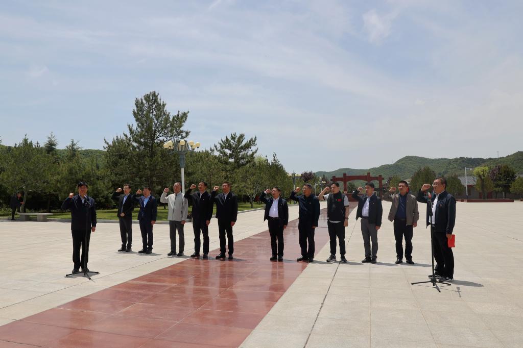 沿着革命先辈的足迹,党委班子成员一行来到位于旬邑县的和马栏革命旧址。在高耸庄严的马栏革命纪念碑前,全体党员干部向革命先烈敬献花篮,深深鞠躬,并在黄道峻的带领下面对党旗,庄严举起右手,重温入党誓词,以铿锵有力的宣誓表达了为共产主义事业奋斗终身的坚定决心。