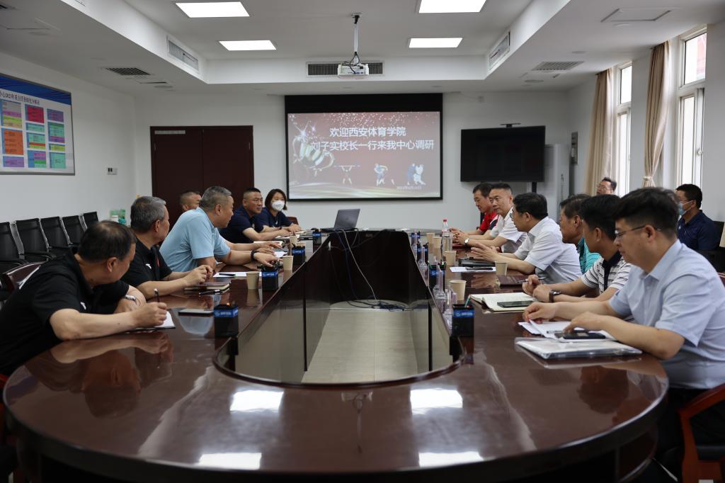 刘子实一行认真听取了中心的工作介绍和存在的问题,实地查看了中心的训练场地、设备和教学资源等方面的情况。他表示,此次调研旨在倾听竞技体育一线的真实需求,充分发挥西安体育学院的智库资源和人才科技专业优势,为陕西体育事业高质量发展交出满意的答卷。一是紧盯体育强省战略需求,发挥学科专业优势做贡献。以训练中心需求为出发点,以全面保障为创新点,以出成绩为考核点,发挥体育专业院校在学科、专业、人才团队方面的综合优势,提高服务陕西竞技体育的主动性和组织力。二是紧盯赛场实战,创新应用型人才培养模式。鼓励更多的研究生、相关专业的本科生跟队实习实践,从竞训一线选题,真正把论文写在竞技体育发展前沿,培养更多应用型、复合型专业人才。三是坚持开放办学,建立长效机制。在运动员学历提升、举办高级体育管理培训班、推进省队校办落细落实等方面下大力气,充分发挥高校人才智库作用,积极推进科教融汇产教融合,促进省队与学校高水平运动队的衔接,扩大选材基础,助力陕西体育攀登高峰。