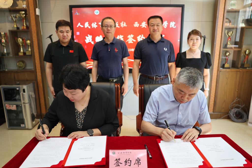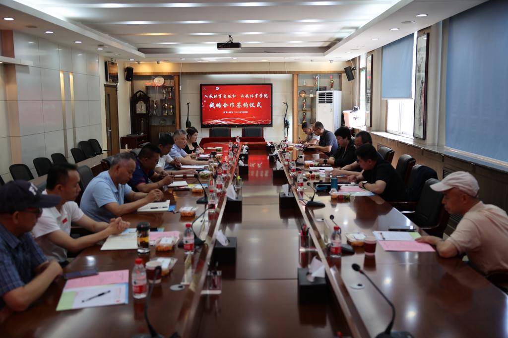 李百放向与会人员介绍了人民体育出版社的历史情况和发展方向,他表示人民体育出版社在教材出版、教材建设等方面具有丰富的经验和历史沉淀,出版社致力于为专业体院校提供更加优质服务。他认为双方可以围绕教材研讨、教材建设、学术专用书版以及体育专业图书推广等多个方面开展多种形式的合作,希望双方能互相协助,互相支持,互利共赢,取得更好教材建设成果创新。随后,李凡和张葆欣就西安体育学院与人民体育出版社战略合作协议进行签约。