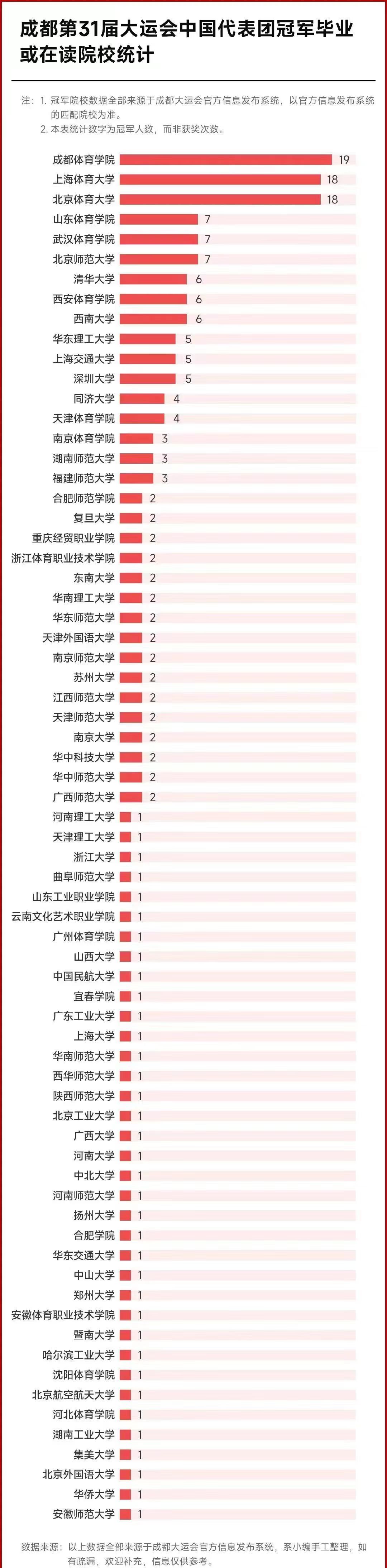 本网讯 8月8日,第31届世界大学生夏季运动会于成都闭幕。我校6名运动员入选中国体育代表团,并参加田径、赛艇、跳水、射击4个大项、10个小项的角逐,共获得6金、1银、2个第四名、1个第六名的优异战绩,在本届大运会的高校冠军数量排行榜上位列第八。此外,我校还有3名教师以教练员和裁判员身份参加大运会,田径教练王志平作为教练员一同前往大运会赛场,教师马海涛、孙梅在体操、排球等项目上进行执裁。