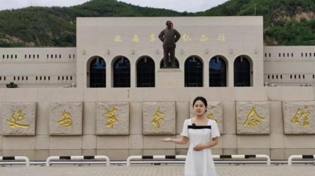 图为实践团队成员在延安革命纪念馆宣讲红色精神
