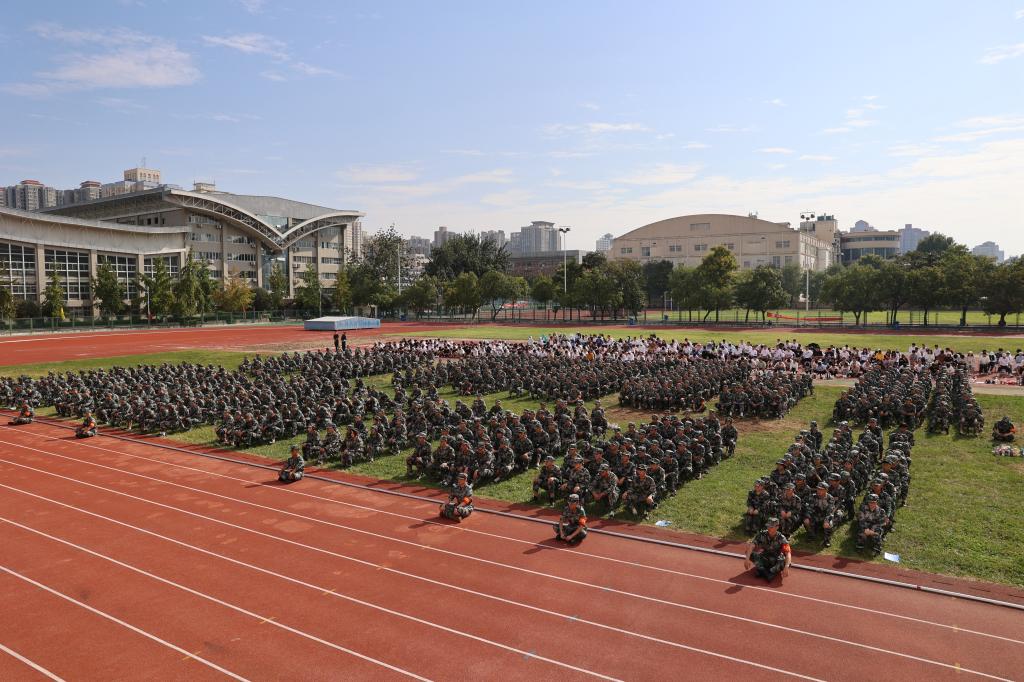 新生代表杜柯瑶带领2023级新生进行了庄严的宣誓并同唱“没有共产党就没有新中国”。2023级新生开学典礼暨军训动员大会在歌声、掌声中圆满落幕。