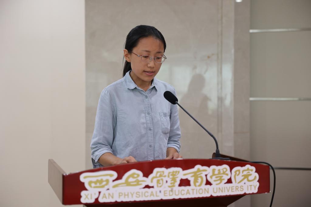 运动与健康科学学院温晓妮老师结合自己的教育育人的经历,从具有责任感、怀仁爱之心、常教常新三个角度分享了从教体会,总结了作为西体的一份子,应爱校荣校、在其位、谋其职、尽其责,拿出体育人的精神气魄,为西体的发展贡献自己的智慧和力量。