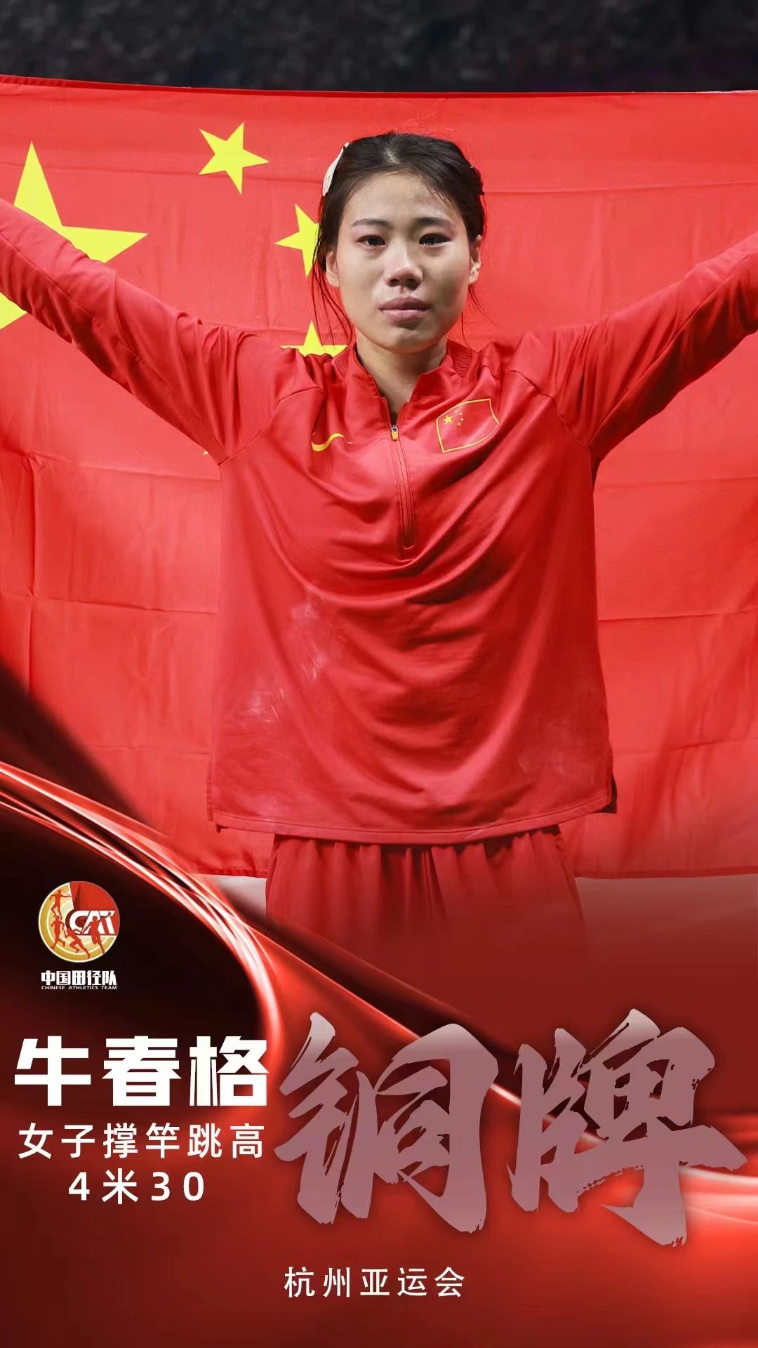 在10月2日举行的女子撑杆跳高决赛中以4米30获得季军