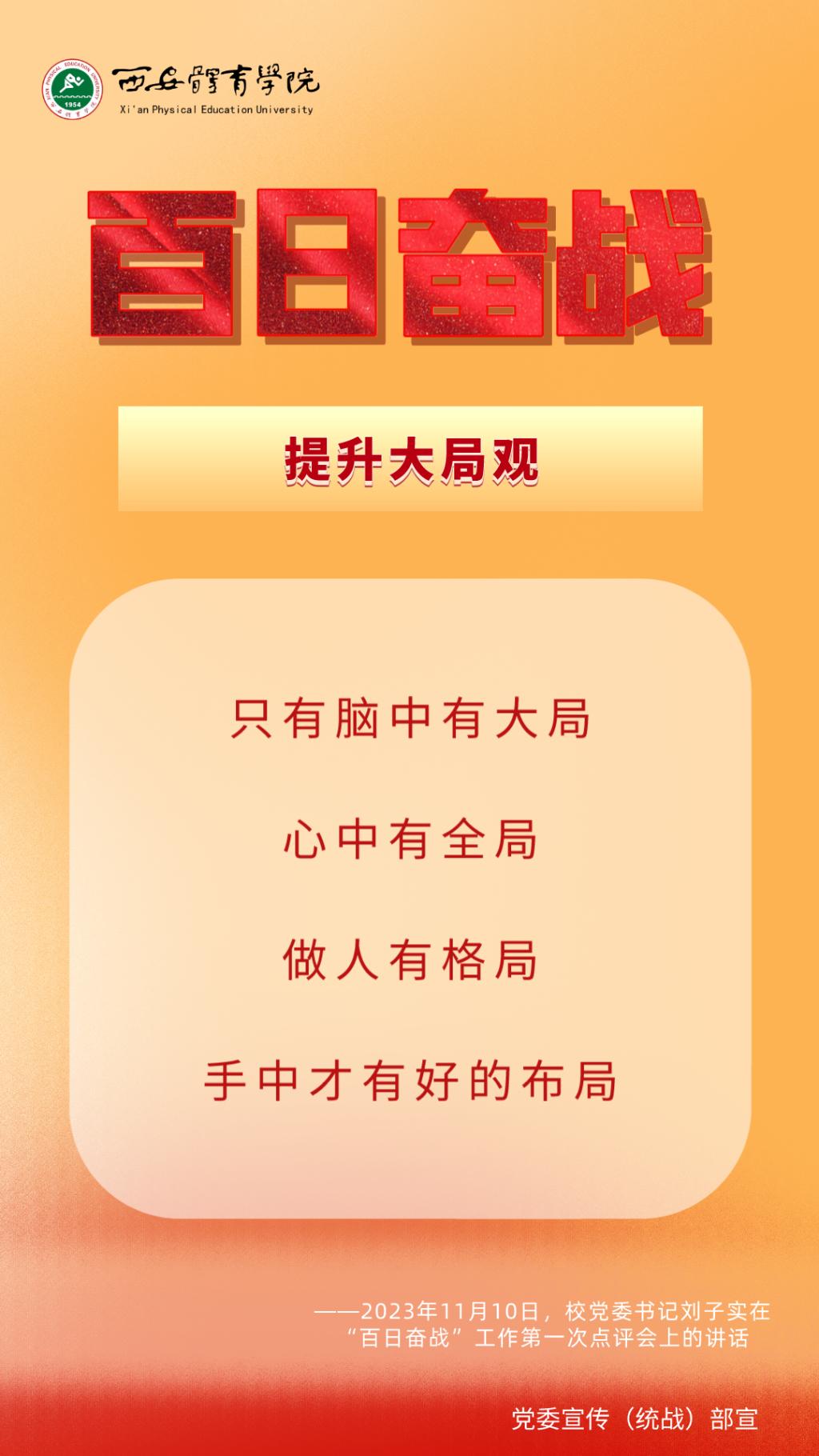 为持续掀起“百日奋战”的热潮,保持学校各项事业高质量发展的战略定力,动员全校师生员工为学校改革发展勠力同心、接续奋斗,本公众号以专栏形式陆续推出“百个要点”的“百张海报”,将“百日奋战”相关会议的主要会议精神和重点内容进行摘录报道,以供师生员工学习交流。