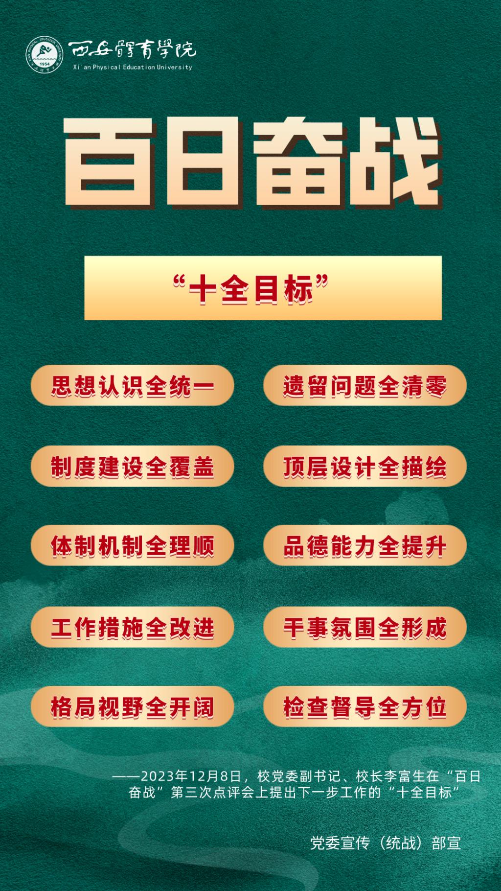 本期推送的是校长李富生在12月8日“百日奋战”第三次点评会上对下一步工作开展提出的“十全目标”。