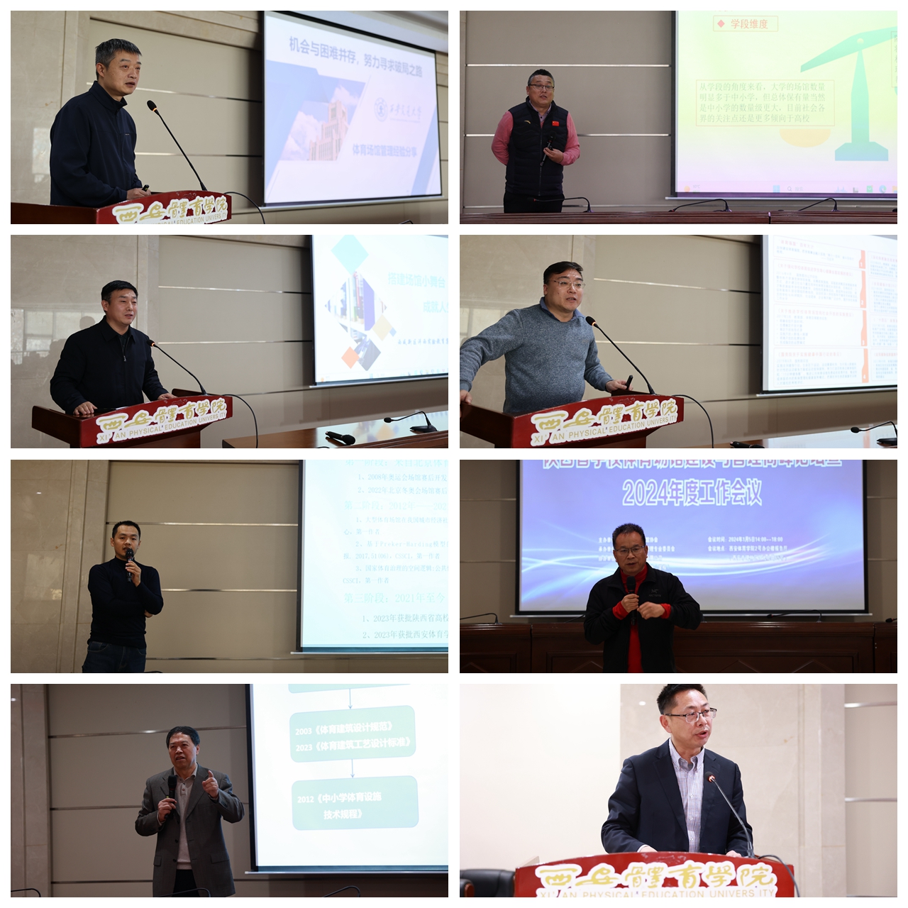 会议分为专题报告和讨论交流两个环节。西安交通大学体育部副主任朱雪宇做了《机会与困难并存,努力寻求破局之路——西安交通大学体育场馆管理经验分享》报告,分析了高校体育场馆发展与破局之路;西安中学教学处副主任徐世岿通过《陕西省中小学体育场馆运行现状及发展的思考》分析了中小学体育场馆发展现状,提出了“专馆专用、一馆多用”的场馆发展理念;我校优秀毕业生、西咸新区沣西实验学校教育集团总校长杨振德以《搭建场馆小舞台 成就人生大精彩》为主题,从价值引领、场馆保障、体育文化育人角度,展望了智慧化体育场馆对学校教育发展的价值;啪啪运动科技有限公司副总裁刘志勇通过《数智化赋能学校体育场馆运管》,谈了数智赋能学校体育场馆的新思路;我校运动训练学院副院长柴王军博士通过《数智技术赋能体育场馆智慧化转型的理论机制与实现路径》报告,介绍了数智化技术赋能学校体育场馆运行管理的挑战与实现路径;勉县实验小学校长王保庆分享了本校体育场馆如何实现从无到有、场馆运行管理从有到优的成功经验;场馆协会主席王德炜教授针对众多院校认为缺少政策法规引领场馆建设的现状,提出了从根本上解决的途径,即编制《陕西省学校体育场馆建设指导意见》及《陕西省学校体育场馆建设技术规程》以规范学校体育场馆设施建设,构建标准化学校体育设施体系的意见。