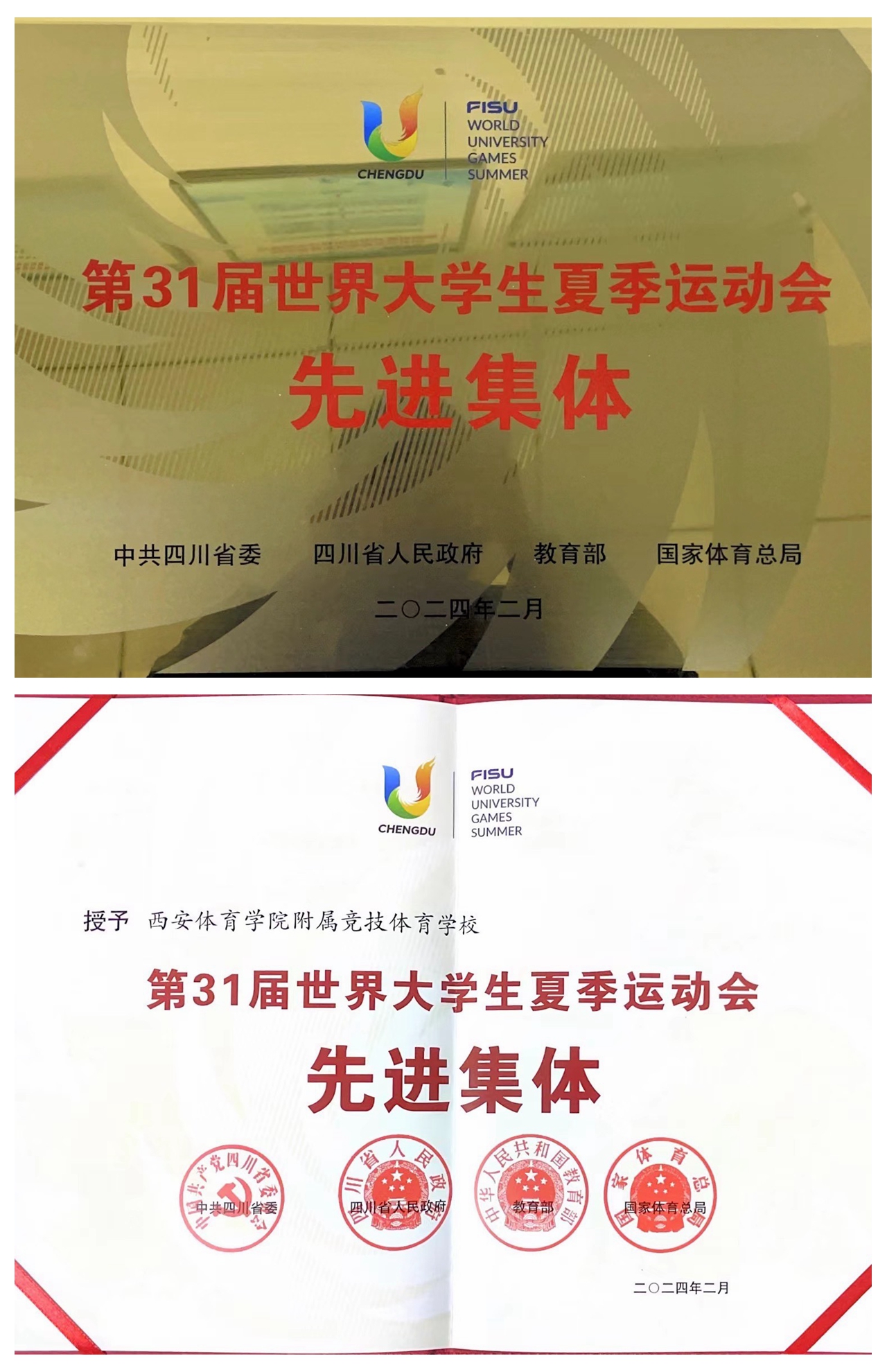 本网讯 2月6日,教育部、国家体育总局联合发布《关于表彰第31届世界大学生夏季运动会先进集体和先进个人的决定》,我校附属竞技体育学校因在本次世界大学生夏季运动会中的卓越表现,被授予“第31届世界大学生夏季运动会先进集体”称号。
