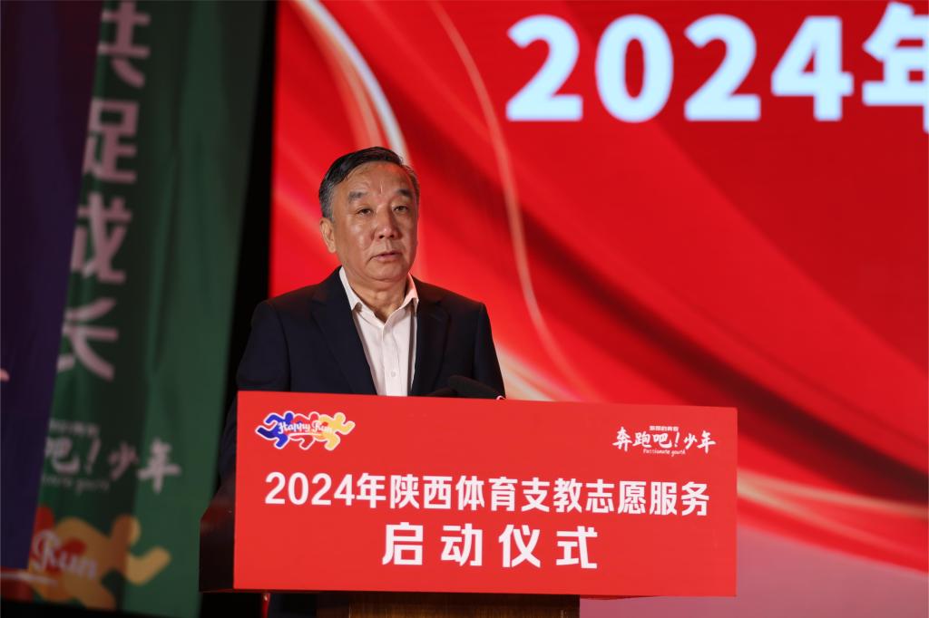 本网讯 3月31日上午,2024年陕西省体育支教志愿服务启动仪式在我校艺术馆大礼堂举行。省体育局副局长邹军,省教育团工委书记王继霞,我校校长李富生,省体育局二级巡视员、青少年体育处处长苏晓刚出席并共同为体育支教志愿服务队授旗。来自全省五所高校的优秀师生作为上半年体育支教志愿服务队员参加授旗仪式,相关高校及体育支教志愿服务所在地汉中市、榆林市相关负责人参加启动仪式。