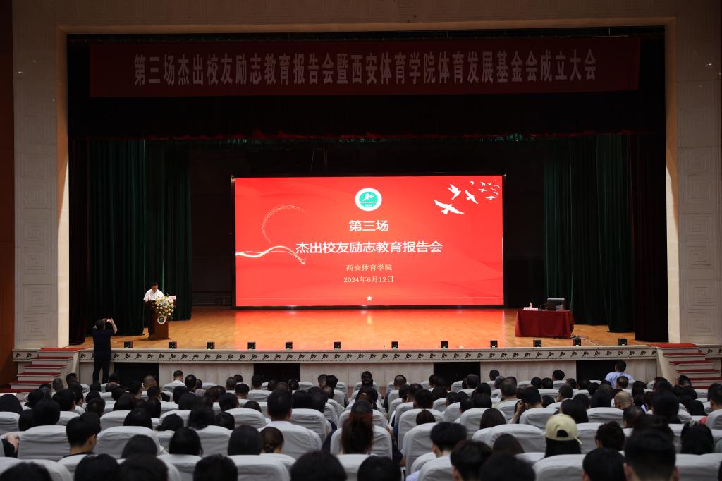 本网讯 6月12日晚,我校在艺术馆大礼堂举行第三场杰出校友励志教育报告会。此次邀请我校95级杰出校友、全国十佳“以体树人”校长、陕西省西咸新区沣西实验学校教育集团总校长杨振德为师生作《人人是才,个个精彩,让才华和能力在探索与前行中生辉》精彩报告。党委书记刘子实,党委副书记、纪委书记、监察专员杨芳乾,党委副书记张卫国、副校长谢英出席报告会,报告由校长李富生主持。师生代表、处科级干部等1000余人到场聆听。