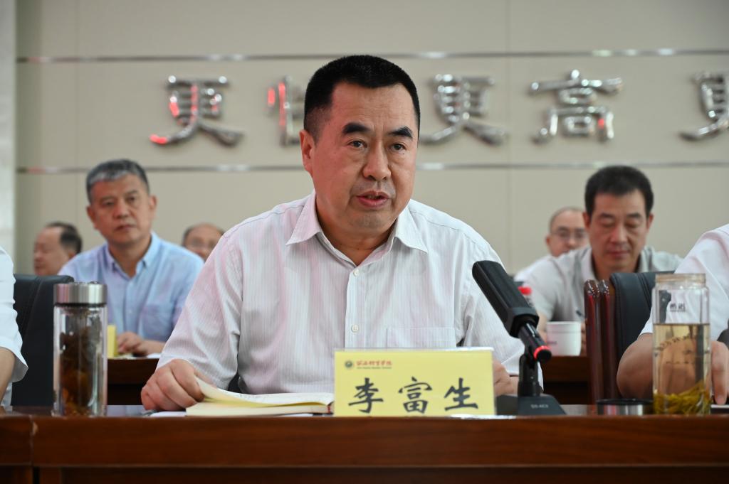 李富生代表学校对支持母校事业发展的广大校友表示感谢。他介绍了学校各项事业改革发展的基本情况,并结合校友提出的建议,从在其位谋其政、自强不息、守正创新三个方面作了表态,介绍了目前学校发展情况:一是持之以恒推进规划建设工程,统筹优化两校区办学格局。二是创新实施推进创收造血工程,为学校发展提供坚实保障支持。三是凝心聚力推进崛起辉煌工程,以崭新面貌为新中国成立75周年、建校70周年献礼。四是一抓到底强化作风建设工程,真抓实干,担当作为。五是突出重点推进训练提升工程,凝练办学特色,服务强国建设。六是破旧立新推进人事改革工程,激发办学治校活力。七是围绕“评估”推进教学改革工程,提升人才自主培养质量。八是突出特色推进学科建设工程,促进内涵发展。九是锐意进取推进科研改革工程,强化有组织科研,服务经济社会发展。十是稳扎稳打推进保障提升工程,创造平安和谐教书育人环境。
