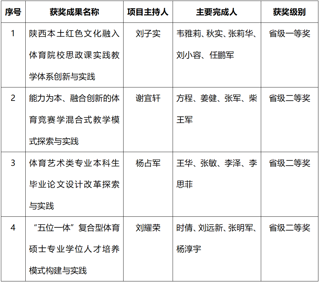 西安体育学院获2023年陕西省高等教育教学成果奖名单