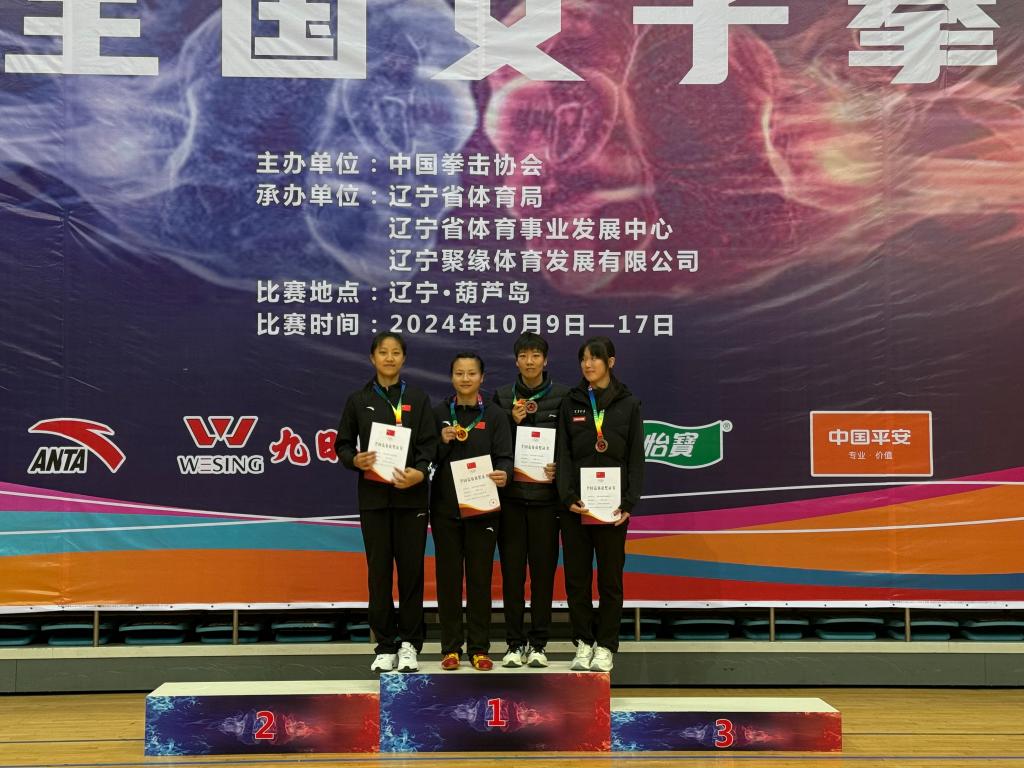 本网讯 日前,2024年全国女子拳击冠军赛在辽宁葫芦岛举行。我校教师刘飘飘以5:0的绝对优势,取得52-54公斤级冠军,我校学生田淑文获得66-70公斤级亚军,朱亚姝、齐昕宇分别取得第五名。