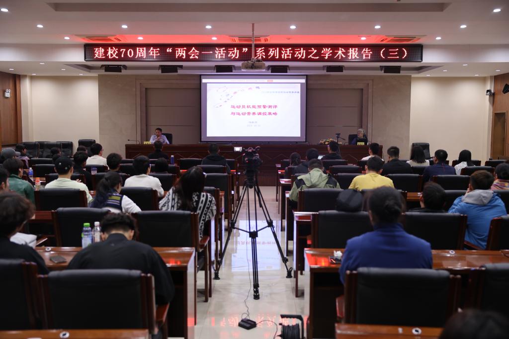 本网讯 10月24日晚,我校举办建校70周年系列活动第三场学术讲座,邀请了北京市体育局原副局长冯美云教授为师生作题为“高水平训练中运动员营养调控对策与实施”的学术报告。相关领域的专家学者以及我校教师、研究生、本科生参加,讲座由党委副书记马海涛教授主持。