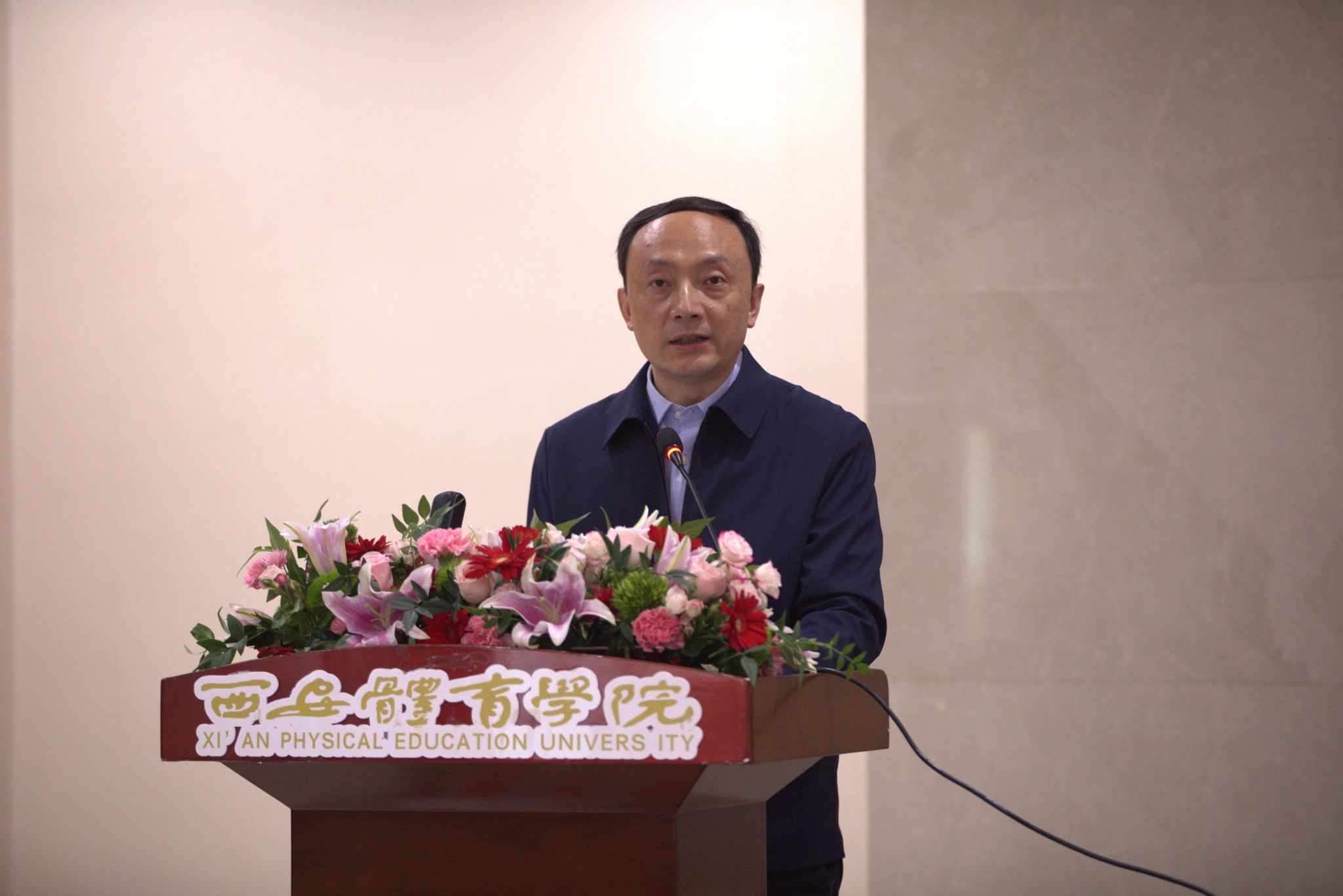 本网讯 11月30日,第六届陕西省运动与健康促进论坛暨陕西省第二届高校学生康复技能大赛在我校含光校区举办。陕西省体育局副局长徐鹏、我校党委副书记马海涛、陕西省体育局科教处副处长甄颖、陕西省体育科学研究所副所长于俊海、我校人事处处长刘涛等领导与嘉宾出席开幕式。开幕式由运动与健康科学学院院长刘军主持。