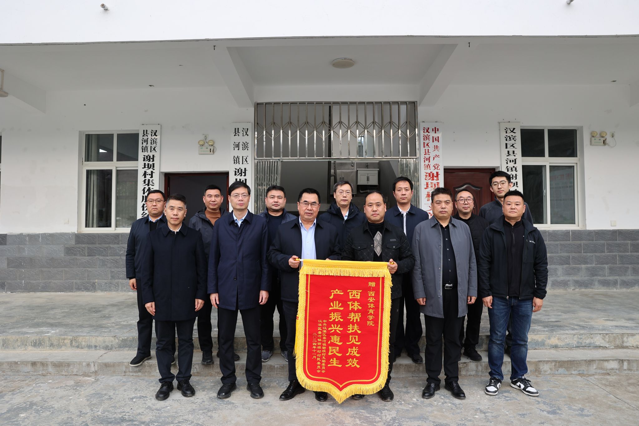 为感谢学校的大力支持和帮扶,谢坝村为学校赠送了“西体帮扶见成效,产业振兴惠民生”锦旗。