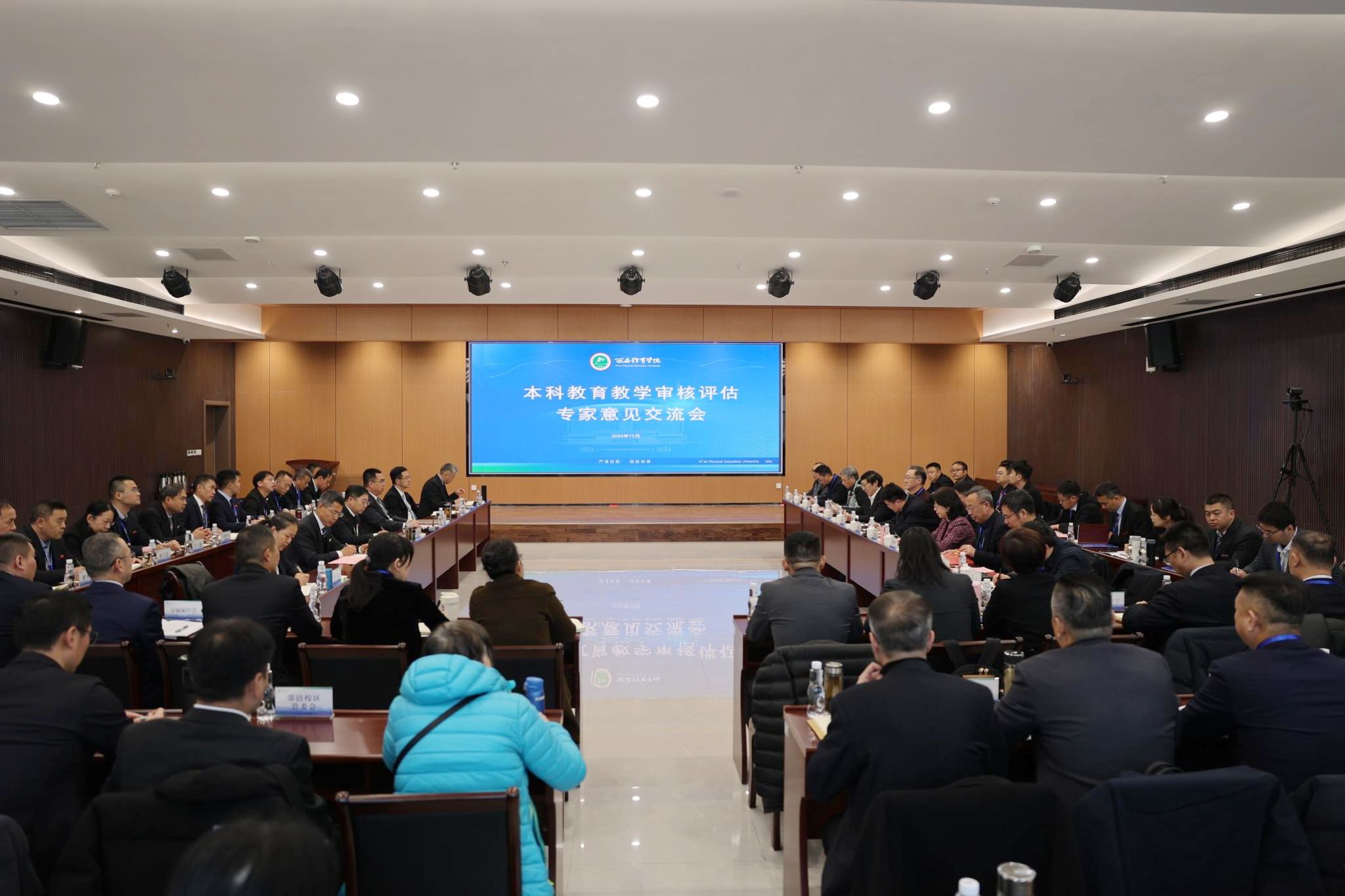 本网讯 12月12日下午,我校在鄠邑校区综合楼五楼会议室召开本科教育教学审核评估专家意见交流会。审核评估专家组组长中国石油大学(华东)原党委副书记、副校长刘华东教授、副组长东北大学原副校长姜茂发教授及专家组全体成员,陕西省委教育工委委员、省教育厅副厅长吴振磊,中国西部高等教育评估中心主任陆根书及全体校领导出席会议。会议由姜茂发教授主持。各职能部门主要负责人、二级学院(部)党政主要负责人、校本科教学督导组组长参会。