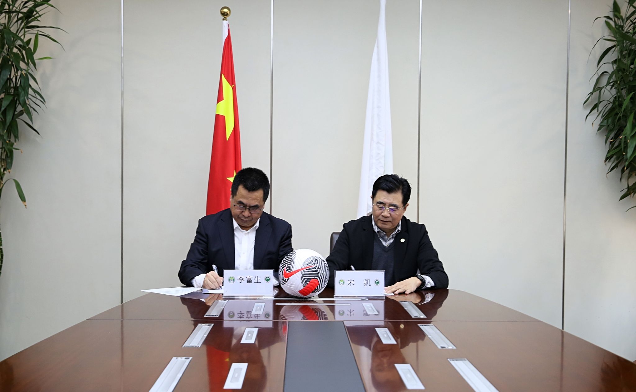 本网讯    为进一步贯彻落实习近平总书记对足球工作的系列指示批示精神,积极推进足球发展,12月25日,校长李富生,党委副书记、纪委书记、监察专员杨芳乾带队赴中国足球协会签订共建足球学院合作协议。党委(校长)办公室、学工部、竞训处、足球学院负责人陪同参加。
