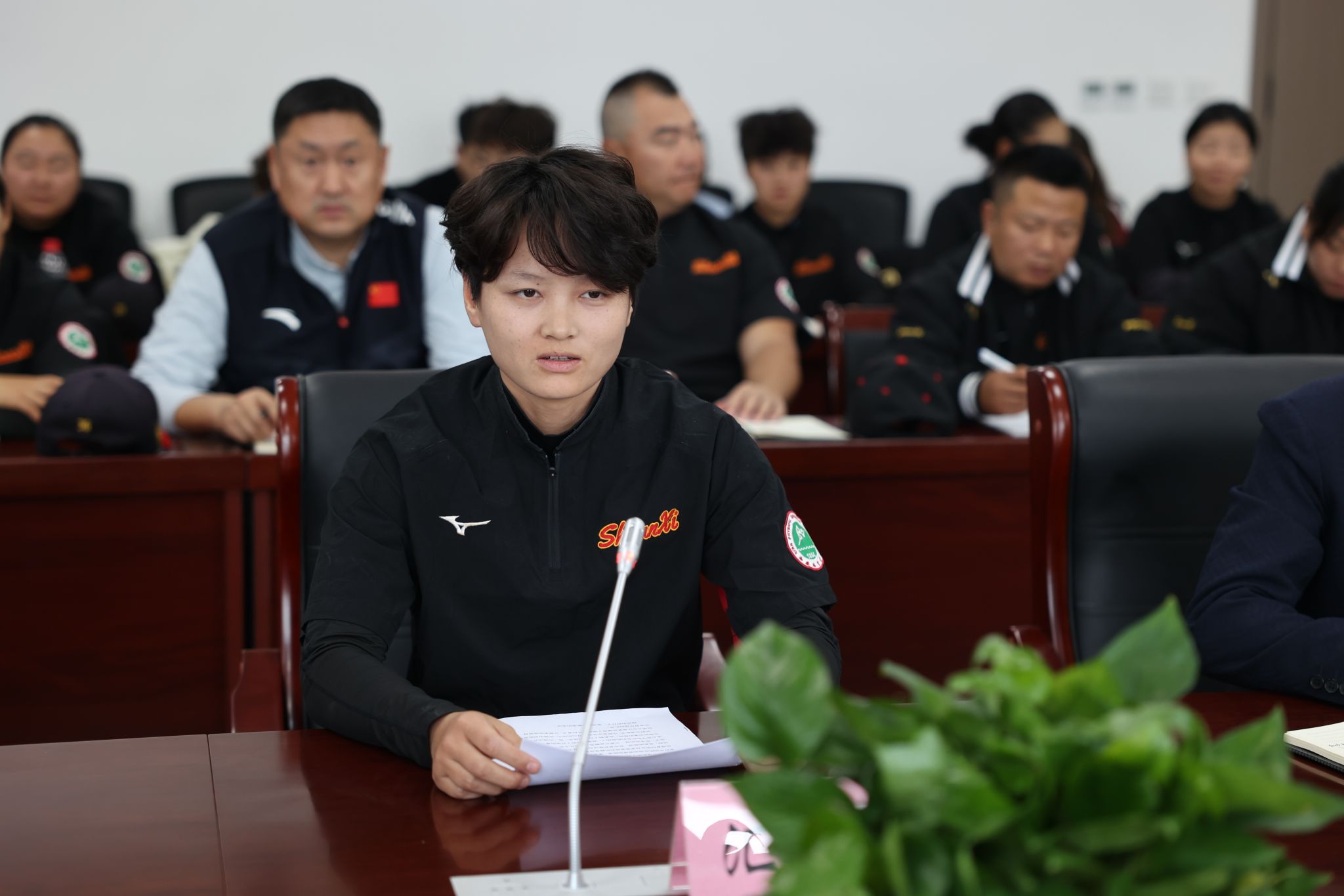 教练曹小利、蔡尚达,队员李昳颖、董昕月及我校参会人员依次作了交流发言。许伟从加强队伍管理、作风管理、技战术研究、针对性策略、对手分析、全方位保障、科学训练、身心康复、文化建设、业务学习等10个方面提了要求。
