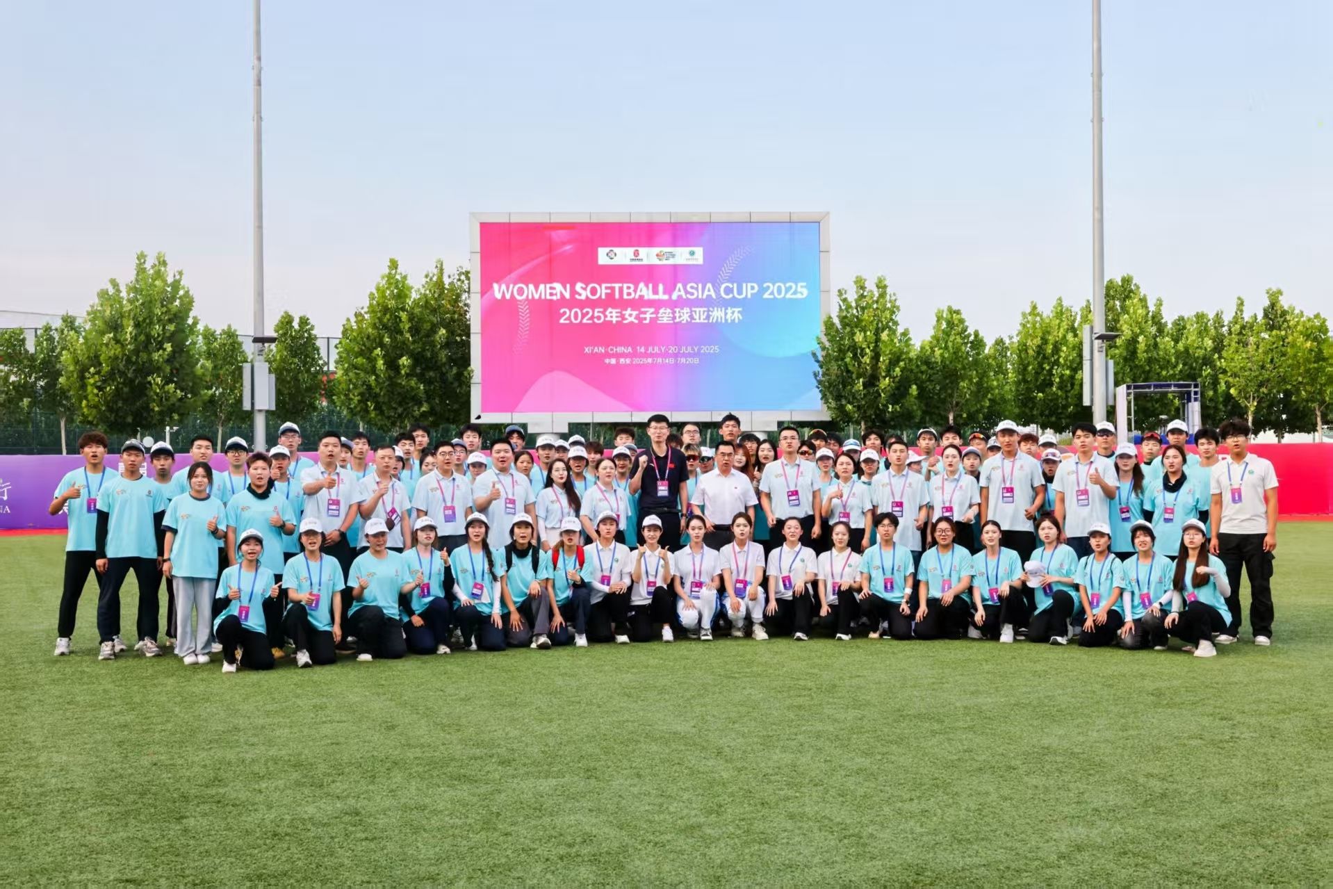 2025年女子垒球亚洲杯于7月14日-20日在西安体育学院鄠邑校区举行,赛场上,除了运动员奋力拼搏的身影,这群身着蓝色POLO衫的“小垒宝”——西安体育学院的志愿者们,构成了最安静的保障背景,也是赛事最亮的青春底色。