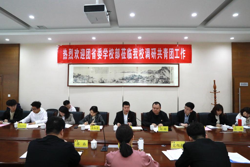 此次团省委学校部调研组来我校调研,对推动我校共青团工作起了积极的促进作用,学校共青团组织将继续团结带领广大团员青年,坚持党建带团建、加强思想引领、深化团学改革,服务青年成长成才,以全新的面貌,向中国共产党成立100周年献礼。