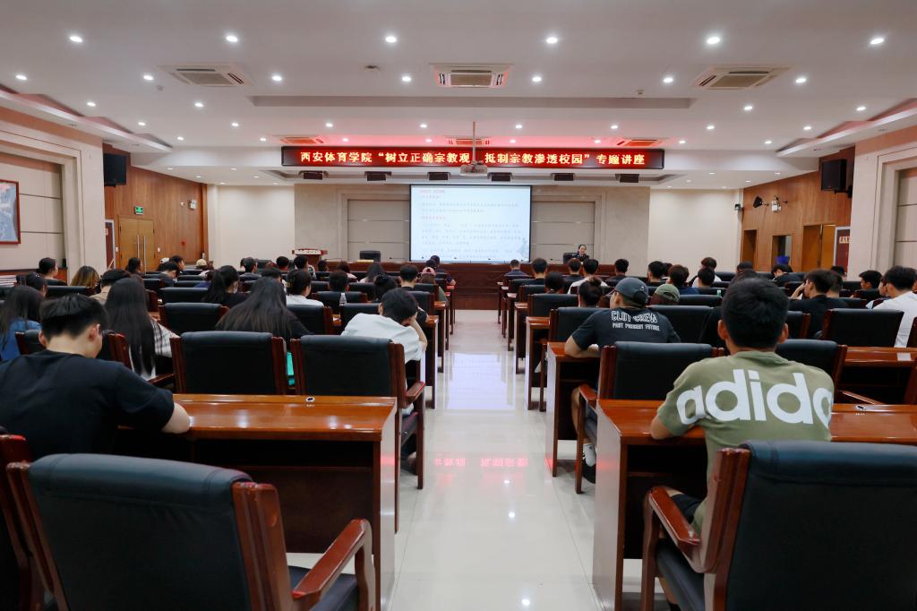 本网讯 为深入贯彻落实习近平总书记关于宗教工作的重要论述,提高师生防范非法宗教活动意识,提升抵御宗教渗透校园能力,普及宗教活动政策法规,5月15日,校党委统战部邀请西安市公安局碑林分局一级警长吕欣为我校师生作《树立正确宗教观抵制宗教渗透校园》专题讲座。各二级学院(部、校)辅导员,学生党、团员代表及党委统战部全体同志参加讲座。校党委校长办公室主任、党委统战部常务副部长张军主持。