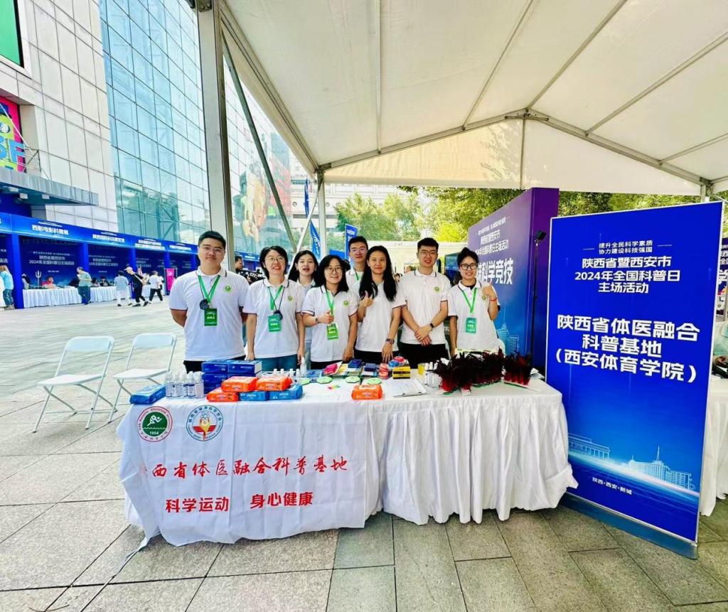 在我校挂牌成立的陕西省体医融合科普基地、运动技术分析与技能评定国家体育总局重点实验室联合参展,我校运动与健康科学学院范育、殷可意等8名青年教师带领运动人体科学、体育教育训练学等专业的硕士研究生前期积极筹备、细致策划,为嘉宾与社区群众提供了体医融合知识宣讲、科普竞赛、文化沙龙、敏捷与平衡能力测试、对抗冲刺比赛等群众喜闻乐见的活动形式,寓教于乐,激发了大家浓厚的求知欲望和参与热情,为大众传播科学锻炼、损伤预防、健康生活等丰富多彩的体育科普内容,受到了群众的一致好评。