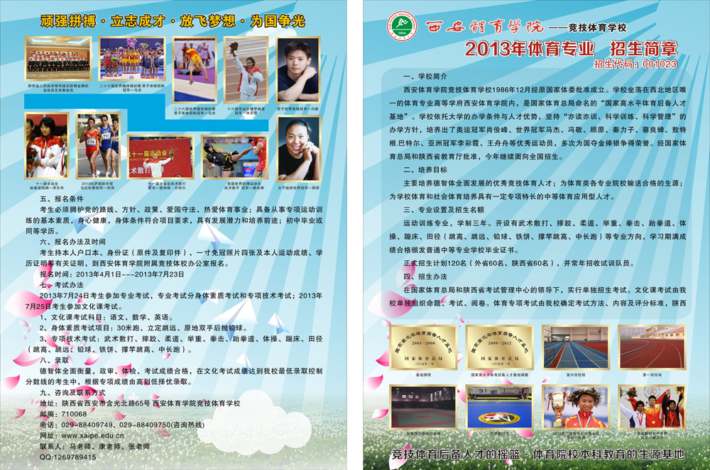 西安体育学院竞技运动学院 西安市碑林区含光北路65号 邮编:710068 联系电话:029-88409750