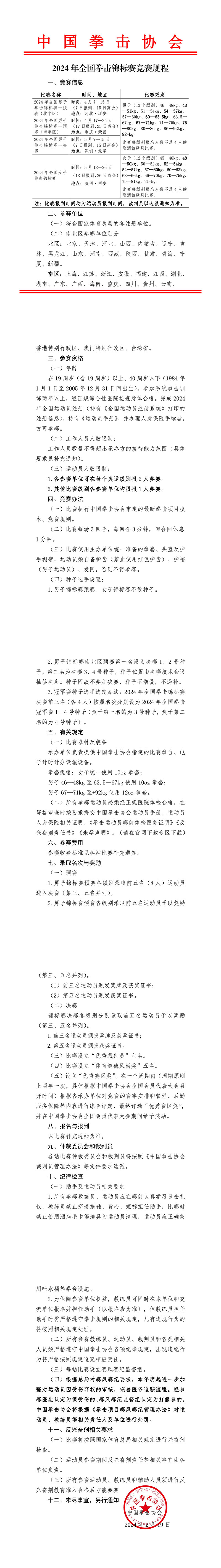 2024年全国拳击锦标赛竞赛规程