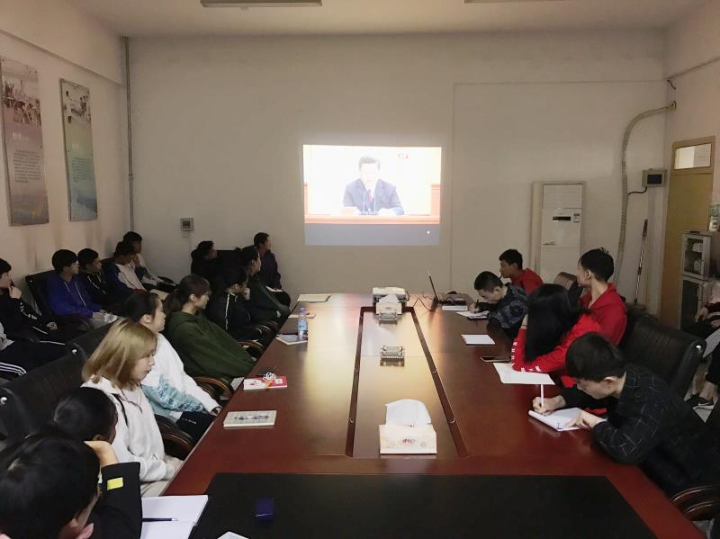 本网讯 2019年4月30日上午10时30分,纪念五四运动100周年大会在人民大会堂举行,中共中央总书记、国家主席、中央军委主席习近平出席大会并发表了重要讲话。为纪念五四运动100周年,引领广大青年学生高举中国特色社会主义伟大旗帜,弘扬以爱国主义为核心的伟大民族精神,我校在第一时间组织学生在二楼会议室集中观看了直播,认真学习习近平总书记在大会上的重要讲话精神。