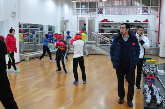 本网讯 2017年1月19日,党委副书记朱元利在竞校领导班子的陪同下看望了寒假期间正在备战的竞校各训练队。朱书记在看望大家的同时要求竞校做好冬训期间的训练工作和后勤保障工作,全力以赴做好备战工作,并向春节期间不能回家过年的教练员和队员表示了慰问。