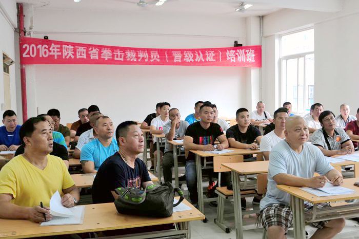本网讯 为提升全省拳击裁判员业务水平,积极为储备十四运会裁判员作准备,结合2016年度陕西省青少年拳击锦标赛(7月29日至8月4日在宝鸡举办),7月26日至28日,来自全省各地的35位拳击裁判员齐聚我校,参加2016年陕西省拳击裁判员(晋级认证)培训班。