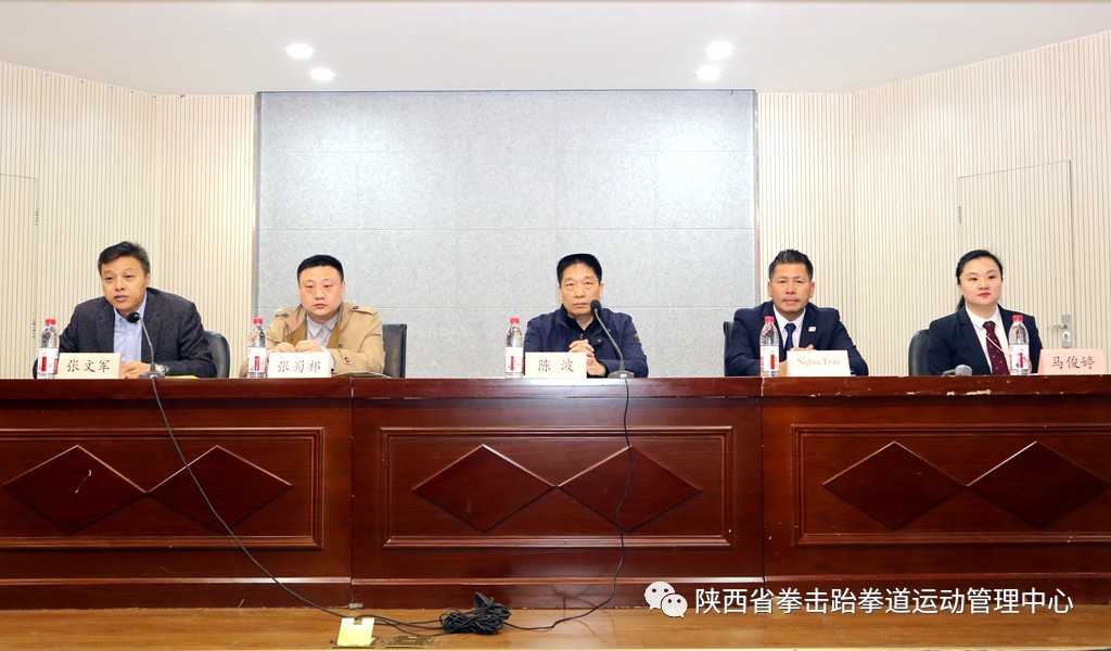 本网讯 4月2日至4月6日,由中国空手道协会主办,陕西省体育局承办,学院和省拳击跆拳道运动管理中心协办的“2019年全国空手道裁判员培训班”在学院开班,省体育局副巡视员陈波致欢迎词,中国空手道协会竞赛部主管张蜀祁、中国空手道协会裁判委员会马俊婷、特邀嘉宾世界空手道联盟资深双A级裁判员、英联邦空手道裁委会主席、大洋洲空手道裁委会委员Tran出席了开班仪式,中国空手道协会执委、竞技体校校长、省拳跆中心书记张文军主持了开班仪式。