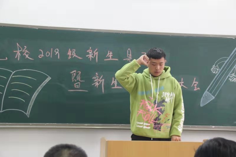 本网讯 11月20日,我校2019级新生见面会暨新生入学教育大会在竞校二楼中一教室召开。本次见面会由辅导员周帅阁主持,出席本次见面会的有校长张文军、书记樊康、副校长纪伟、行政党支部书记党康等校领导、全体教师及新疆内派教师高老师、行政干部及2019级全体中专和预科新生。
