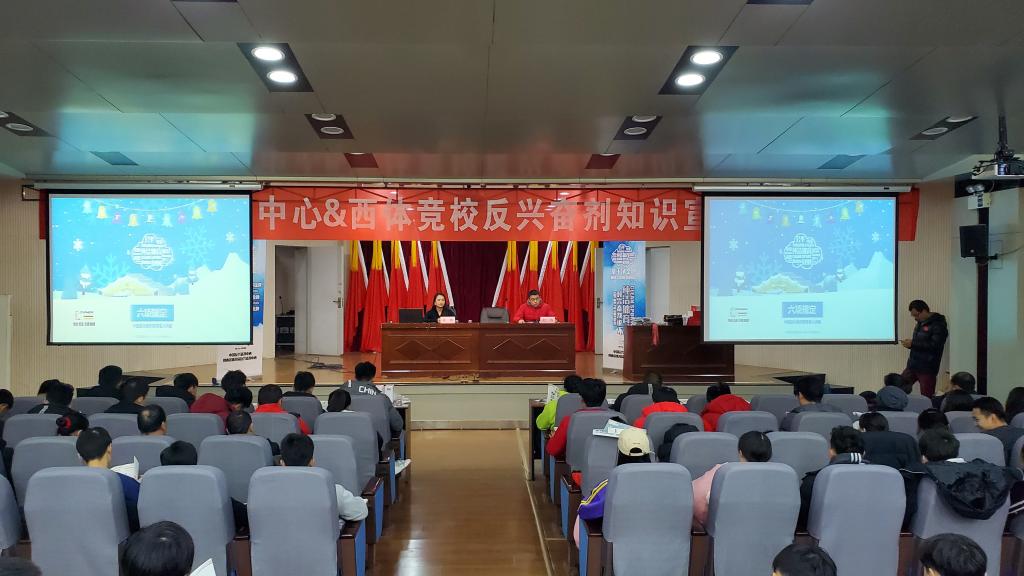 本网讯 2020年1月2日下午,我院附属竞技体校与陕西省拳击跆拳道运动管理中心在西安体院教学楼一楼报告厅开展了反兴奋剂知识宣传和运动员科学膳食宣传专题教育讲座。此次讲座由西安体育学院附属竞技体校副校长纪伟主持,我院附属竞技体校与陕西省拳击跆拳道运动管理中心全体运动员、教练员、行政人员、食堂保障人员参加了培训讲座。