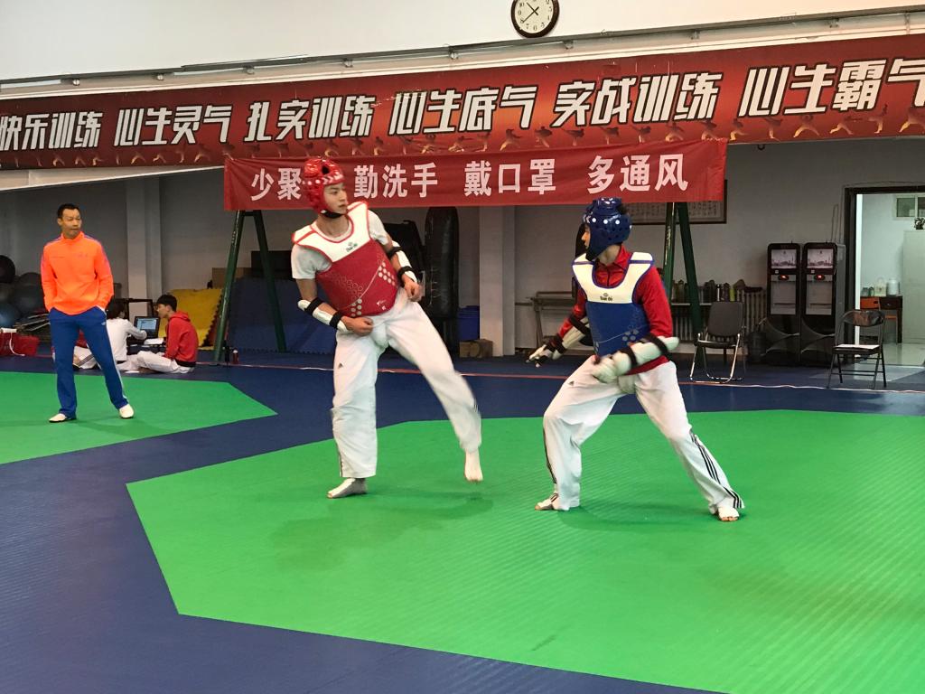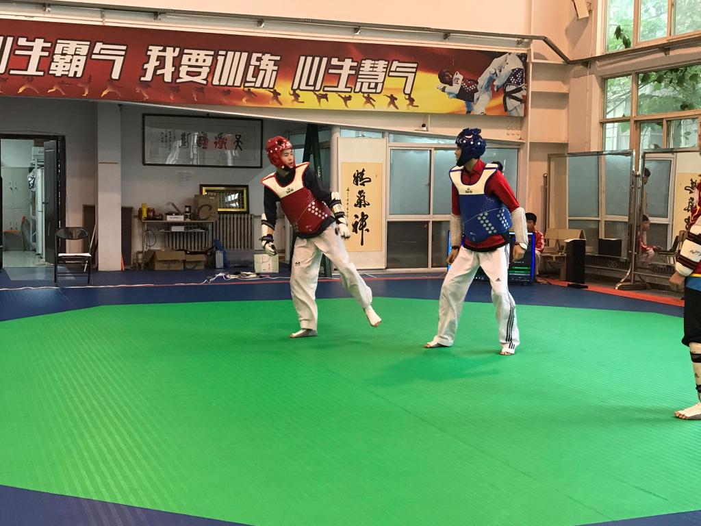 为检验今年冬训成果,进一步提高训练质量,积极备战十四运会和全国比赛,在比赛中发挥高水平竞技能力。我校于5月9日上午在跆拳道馆内举行教学实战比赛。我校备战全运会重点跆拳道运动员和一线运动员18人参加了比赛。