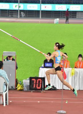 本网讯 2024年4月7日在浙江杭州,我校撑竿跳高队参加了全国田径大奖 赛(第二站),其中我校女子撑竿跳高运动员牛春格以4米50的成绩获得第一。此次比赛女子撑竿跳高共15名参赛运动员,牛春格在这次比赛中发挥出正常训练水平,而且她是14步助跑,步数比较短,能跳出这样的成绩非常不错。