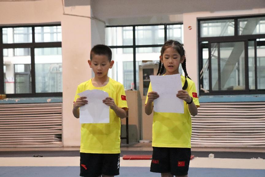 为弘扬爱国主义精神,培养运动员的爱国之情,在小运动员心中种下热爱祖国的种子。我校蹦床队与前来外训的安徽省蹦床队于7月17日上午共同举办了“爱国与体育同行”主题演讲活动。